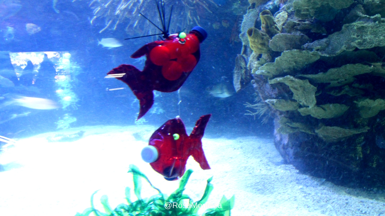 Este belén navideño está sumergido en el acuario de aguas tropicales del Oceanogràfic de Valencia. Realizado únicamente con envases de plástico. Al tener que convivir con los peces del acuario, no ha sido posible utilizar ningún tipo de metales o productos químicos como pegamentos o pinturas.