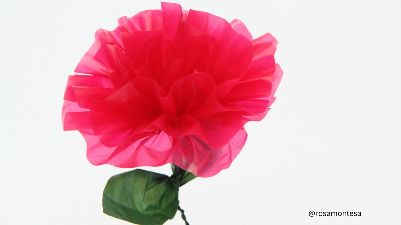 Yo no desprecio nada, para realizar las rosas quedan unos restos que se convierten en estas otras flores. Las hojas verdes espigadas están realizadas a partir de diferentes tipos de botellas de plástico de color verde.