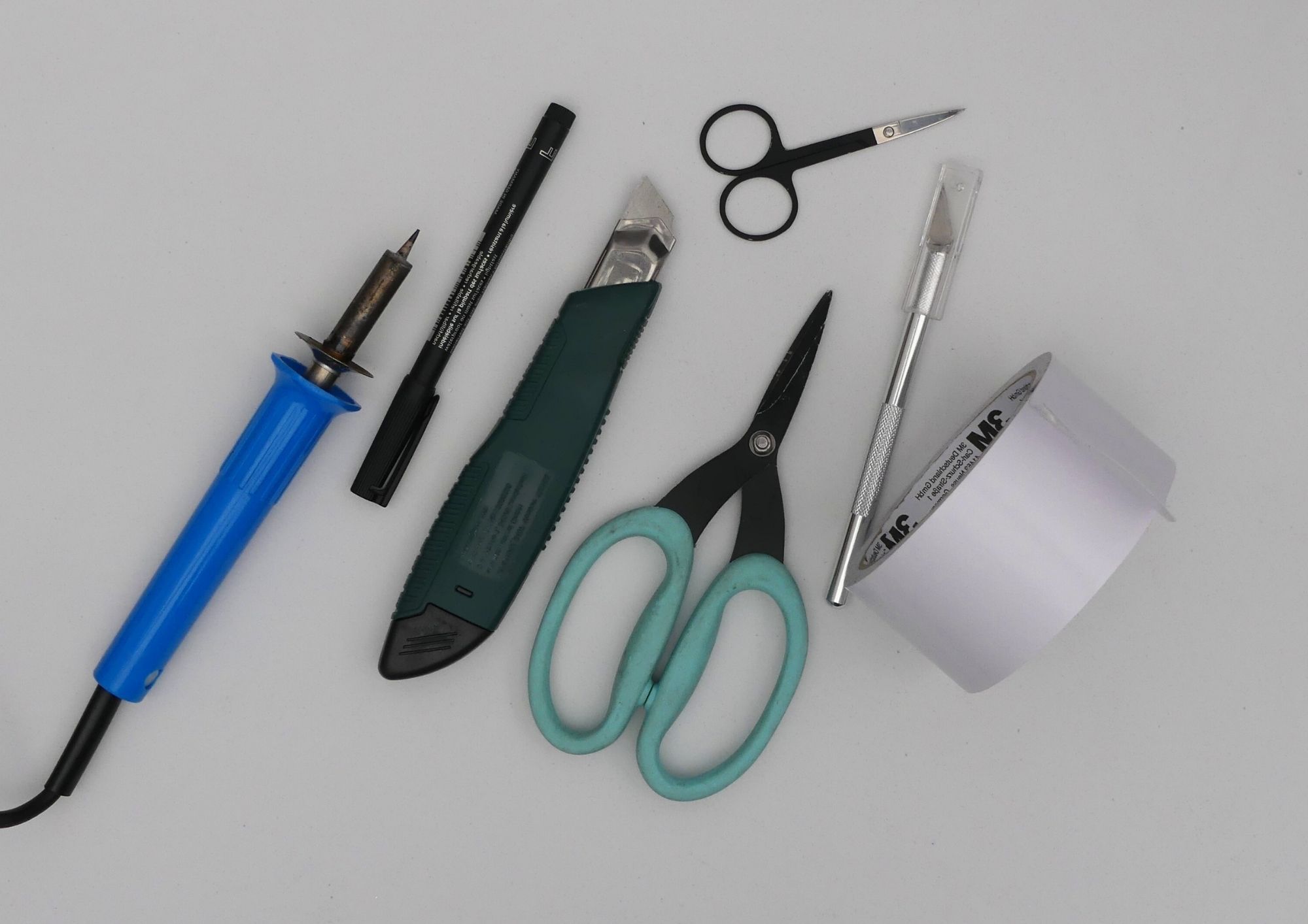 Recorté las piezas primero con cutter los cortes más grandes, y tijeras (y tijeras finas para detalles); suavicé bordes y corregí formas.