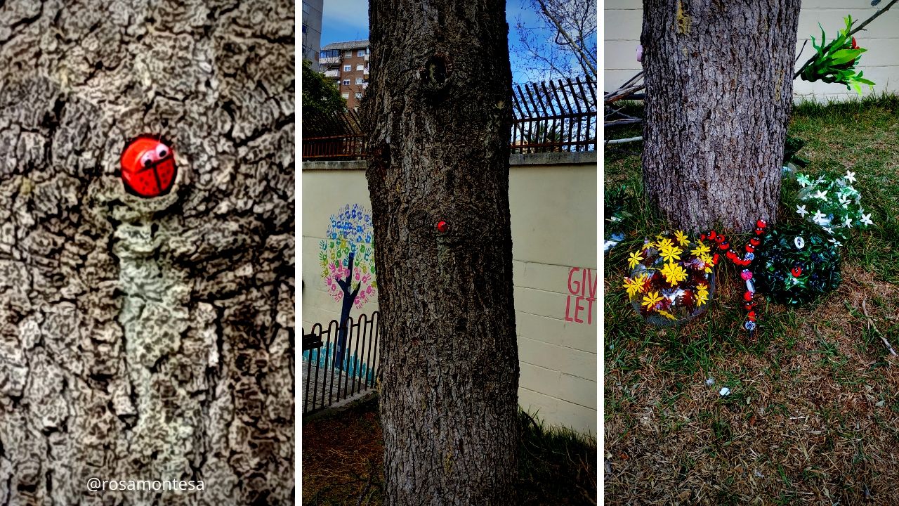 Con unos tapones, hicimos un guiño a los insectos. Añadiendo algunas mariquitas el entorno.