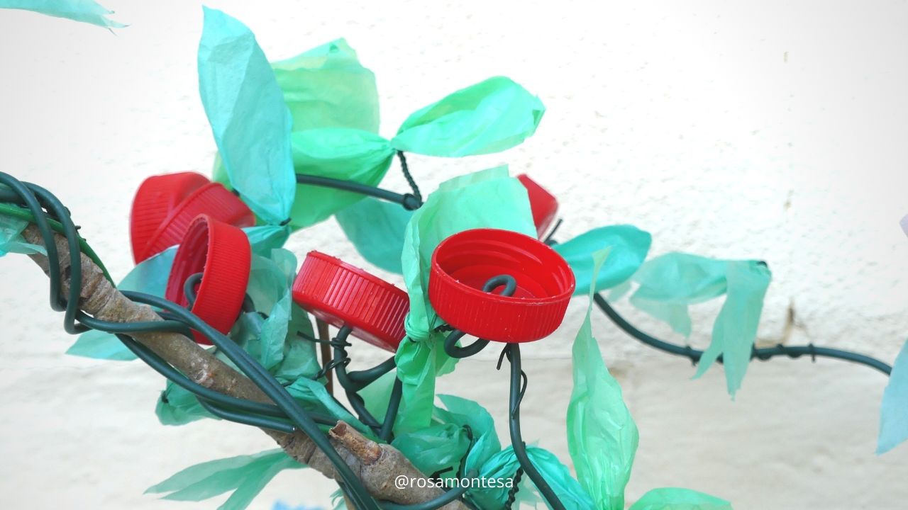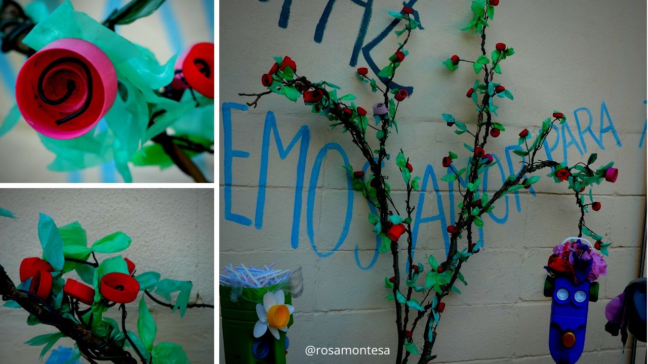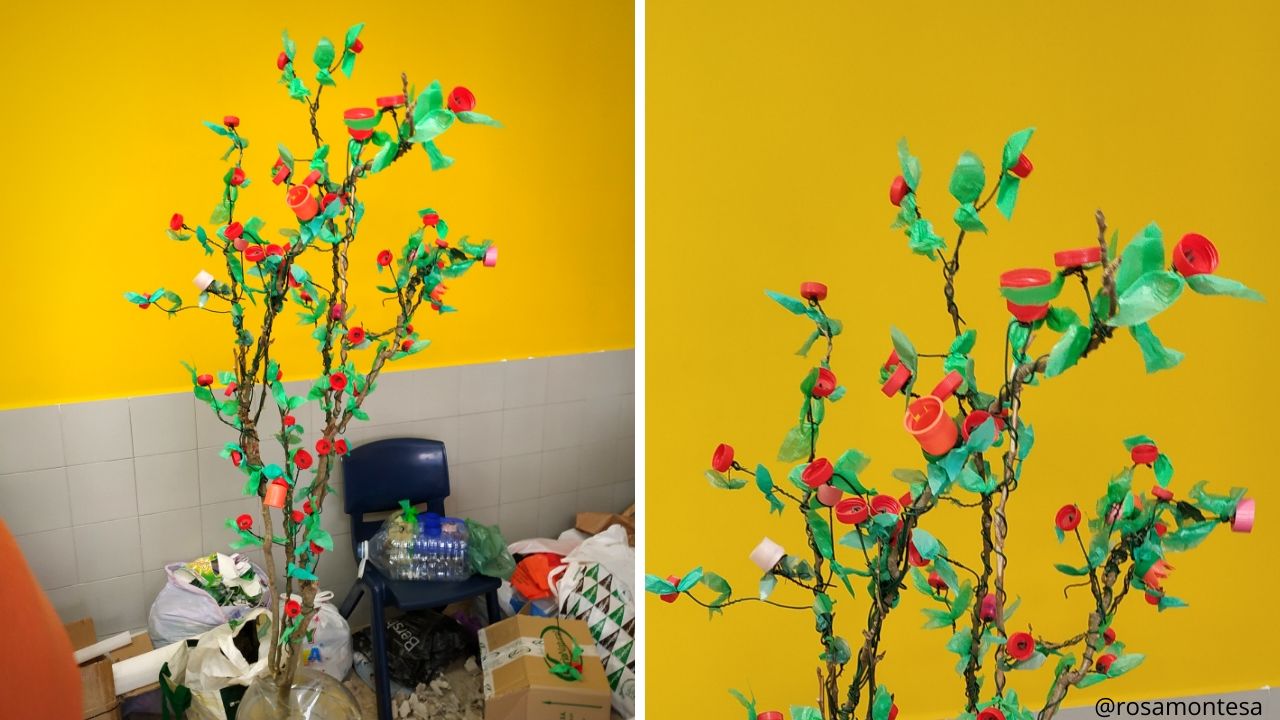 Durante las sesiones del proyecto «Promoviendo procesos educativos» y dentro de las posibilidades que ofrecen los tapones de botellas y las bolsas de plástico, realizamos un taller con las familias para crear flores con tapones, y hojas con bolsas de plástico.