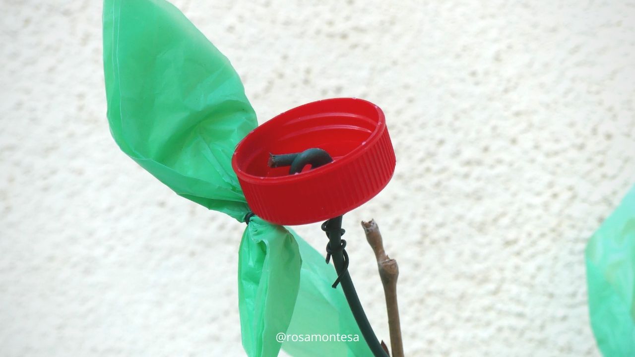 Las flores parecen rosas, y después de haber aprendido esta manera de convertir los tapones en flores, las familias enseñaron a las profesoras y a los alumnos a realizar las flores. Una vez realizadas, fueron montadas en ramas. Al final, se quedaron junto al muro del jardín. Un monumento fallero creado para no ser quemado, cuya función es servir de estudio para que los niños puedan observar la degradación durante el tiempo.