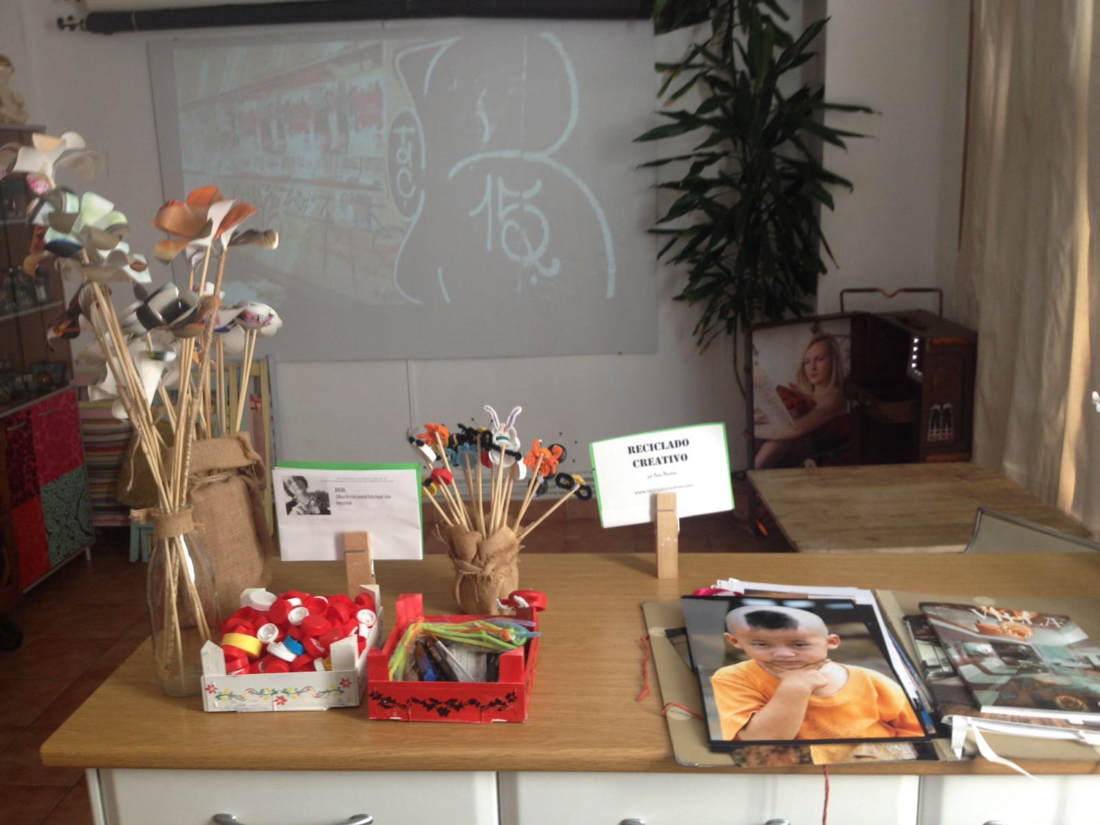 Eva es fotógrafa. Está muy comprometida con el arte y con nuestro barrio. Durante el evento Russafart 2016 ella abrió las puertas de su estudio. Invita a artistas y amigos a participar haciendo alguna actividad interesante. En esta ocasión, queríamos unir nuestras dos pasiones. La suya por la fotografía y la mía por el reciclado.