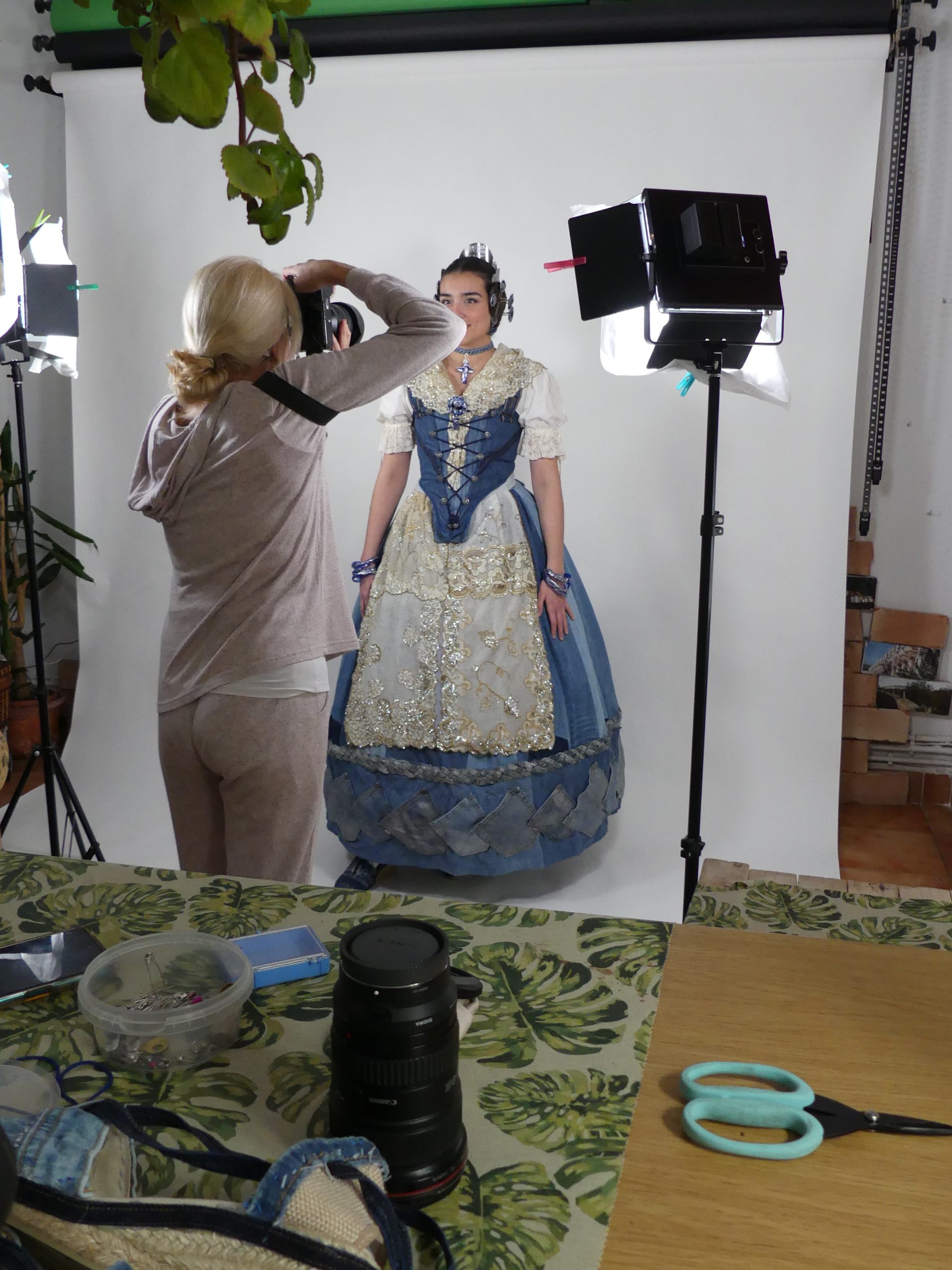 Sobre el proceso y los lugares donde hemos trabajado, solamente podemos decir que hemos sido bastante obsesivas, pero estábamos tan contentas, que no nos importaba. Un día estábamos en el taller de Luna, otro día en casa de mi madre y otro nos plantábamos en CoworkingValencia, lugar donde yo trabajo. Los remates finales se pudieron hacer en el taller de Jeanologia.